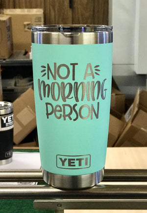 Engraved YETI Ramblers are perfect for on the go drinks. Whether it is a hot coffee in the morning or an afternoon sweet tea, YETI Ramblers will keep your drink hot or cold all day long.
