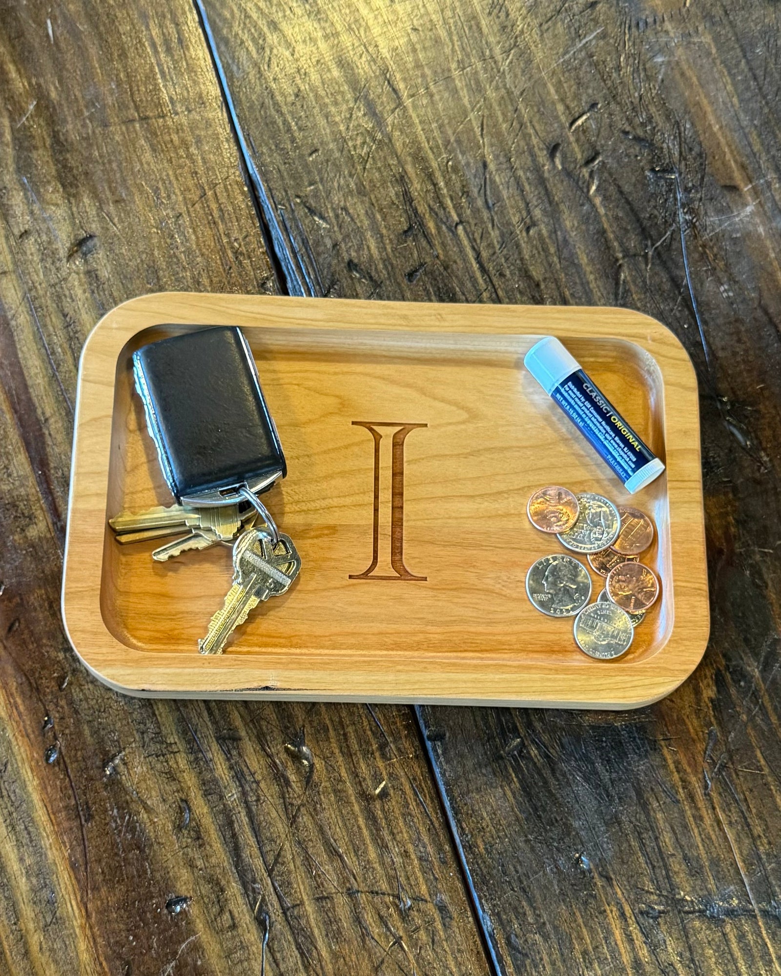 Cherry Wood Tray - Engraved Single Letter Design | Elegant Wood Catch All