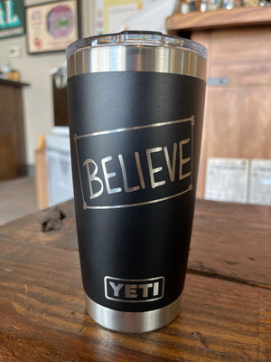 Engraved YETI Ramblers are perfect for on the go drinks. Whether it is a hot coffee in the morning or an afternoon sweet tea, YETI Ramblers will keep your drink hot or cold all day long.