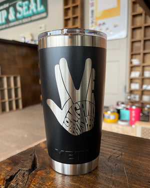 Engraved YETI Ramblers are perfect for on the go drinks. Whether it is a hot coffee in the morning or an afternoon sweet tea, YETI Ramblers will keep your drink hot or cold all day long.